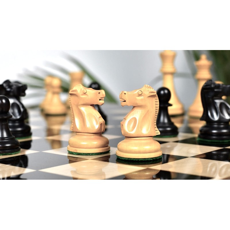 The legendary Fischer v Spassky 1972 match played in Reykjavik. So here is your chance to own a superb reproduction of these wonderful chess pieces as used by the legendary grandmasters Bobby Fischer and Boris Spassky.BOXWWOD AND EBONISED WOOD Includes 34 Chess Pieces, including 2 Additional Queens (for Pawn Promotion)BOXWWOD AND EBONISED WOOD(BLACK STAINED) Dime..